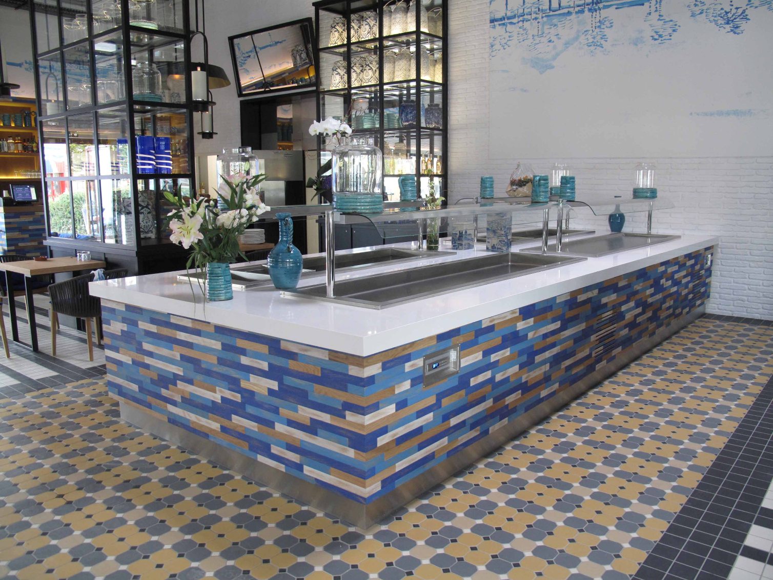 Project: Restaurant AZUR à Reims Supplier: Diffusion Ceramique Industrie(DCI) Tel+33 1 46940202 dci6@wanadoo.frTopCer materials: Pattern Octagon